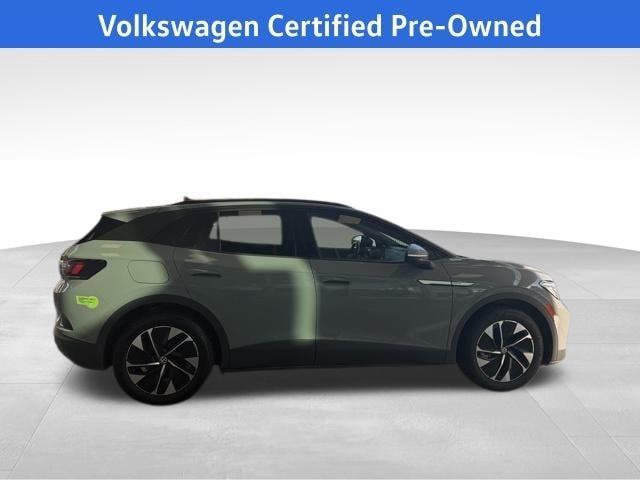 2022 Volkswagen ID.4 Pro S in Moonstone with Lunar Gray Premium Synthetic, Volkswagen Certified, Moonroof/Sunroof, 4.39 Axle Ratio, 7 Speakers, ABS brakes, Active Cruise Control, Air Conditioning, Alloy wheels, Auto High-beam Headlights, Automatic temperature control, Brake assist, Bumpers: body-color, Driver's Seat Mounted Armrest, Dual front impact airbags, Dual front side impact airbags, Electronic Stability Control, Emergency communication system: VW Car-Net services (capabilities require enrollment or subscription), Exterior Parking Camera Rear, Four wheel independent suspension, Front anti-roll bar, Front Bucket Seats, Front dual zone A/C, Front reading lights, Fully automatic headlights, Heated door mirrors, Heated Front Seats, Heated front seats, Heated steering wheel, Low tire pressure warning, Memory seat, Navigation System, Occupant sensing airbag, Outside temperature display, Overhead airbag, Perforated V-Tex Leatherette Seating Surfaces, Power door mirrors, Power driver seat, Power Liftgate, Power passenger seat, Power steering, Power windows, Radio data system, Radio: Discover Pro Max w/12 Touchscreen Nav, Rain sensing wipers, Rear anti-roll bar, Rear reading lights, Rear seat center armrest, Rear window defroster, Rear window wiper, Remote keyless entry, Speed-sensing steering, Steering wheel mounted audio controls, Telescoping steering wheel, Tilt steering wheel, Traction control, Trip computer, Turn signal indicator mirrors, Variably intermittent wipers, Wheels: 19 5-Spoke 2-Tone Machined Alloy. Certified. Moonstone 2022 Volkswagen ID.4 Pro S RWD Single-Speed Automatic Electric MotorOdometer is 13769 miles below market average!