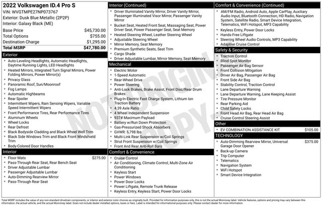 Don't miss the opportunity to experience the future of electric mobility. Schedule a test drive today and discover the exceptional value and unparalleled driving dynamics of this 2022 Volkswagen ID.4 Pro S. We're confident you'll be impressed by its remarkable features and the exceptional ownership experience it offers.