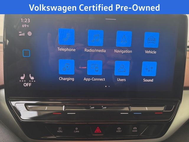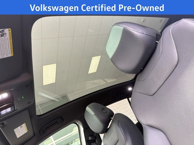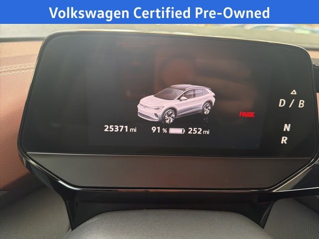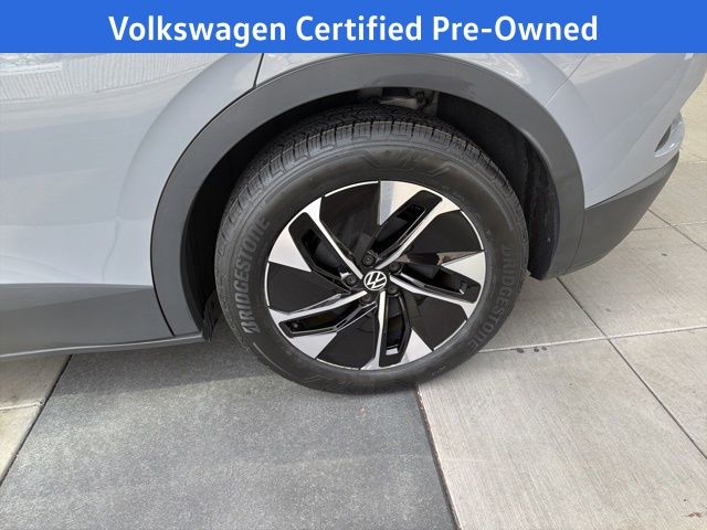 Navigation, Volkswagen Certified, Moonroof/Sunroof, 4 Wheel Independent Suspension, 4.39 Axle Ratio, 7 Speakers, ABS brakes, Air Conditioning, Alloy wheels, Auto High-beam Headlights, Auto-dimming Rear-View mirror, Automatic temperature control, Brake assist, Bumpers: body-color, Delay-off headlights, Driver door bin, Driver vanity mirror, Driver's Seat Mounted Armrest, Dual front impact airbags, Dual front side impact airbags, Electronic Stability Control, Emergency communication system: VW Car-Net services (capabilities require enrollment or subscription), Exterior Parking Camera Rear, Four wheel independent suspension, Front anti-roll bar, Front Bucket Seats, Front dual zone A/C, Front fog lights, Front reading lights, Fully automatic headlights, Heated door mirrors, Heated Front Seats, Heated front seats, Heated steering wheel, Illuminated entry, Low tire pressure warning, Memory seat, Navigation System, Occupant sensing airbag, Outside temperature display, Overhead airbag, Overhead console, Panic alarm, Passenger door bin, Passenger seat mounted armrest, Passenger vanity mirror, Perforated V-Tex Leatherette Seating Surfaces, Power door mirrors, Power driver seat, Power Liftgate, Power passenger seat, Power steering, Power windows, Radio data system, Radio: Discover Pro Max w/12" Touchscreen Nav, Rain sensing wipers, Rear anti-roll bar, Rear reading lights, Rear seat center armrest, Rear window defroster, Rear window wiper, Remote keyless entry, Roof rack: rails only, Speed control, Speed-sensing steering, Split folding rear seat, Spoiler, Steering wheel mounted audio controls, Telescoping steering wheel, Tilt steering wheel, Traction control, Trip computer, Turn signal indicator mirrors, Variably intermittent wipers, Wheels: 19" 5-Spoke 2-Tone Machined Alloy. Moonstone 2022 Volkswagen ID.4 Pro S RWD Single-Speed Automatic Electric Motor