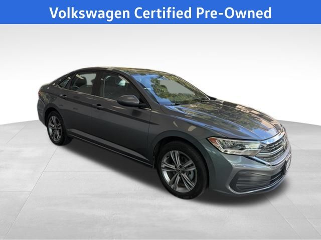 Powered by a 1.5L I-4 DI DOHC Turbocharged engine paired with an 8-Speed Automatic with Tiptronic transmission, the Jetta 1.5T SE delivers an exhilarating driving experience with an impressive 29 city / 40 highway MPG. Enjoy the convenience of features like 4 Speakers, AM/FM radio, Radio data system, Radio: MIB3 Composition Color w/6.5" Touchscreen, Air Conditioning, Automatic temperature control, Front dual zone A/C, Rear window defroster, Power driver seat, Power steering, Power windows, Remote keyless entry, Steering wheel mounted audio controls, Speed-sensing steering, Traction control, 4-Wheel Disc Brakes, ABS brakes, Active Blind Spot Monitor, and much more.