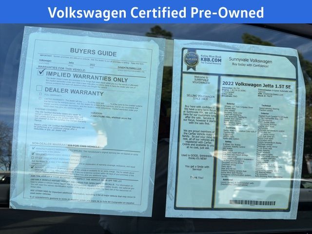 With a list price of $20,998, this 2022 Volkswagen Jetta 1.5T SE represents exceptional value and a smart choice for the savvy car buyer. Experience the confidence and peace of mind that comes with owning a Volkswagen Certified Pre-Owned vehicle. Visit our showroom today to take this exceptional Jetta for a test drive and discover why it's the perfect fit for your lifestyle.