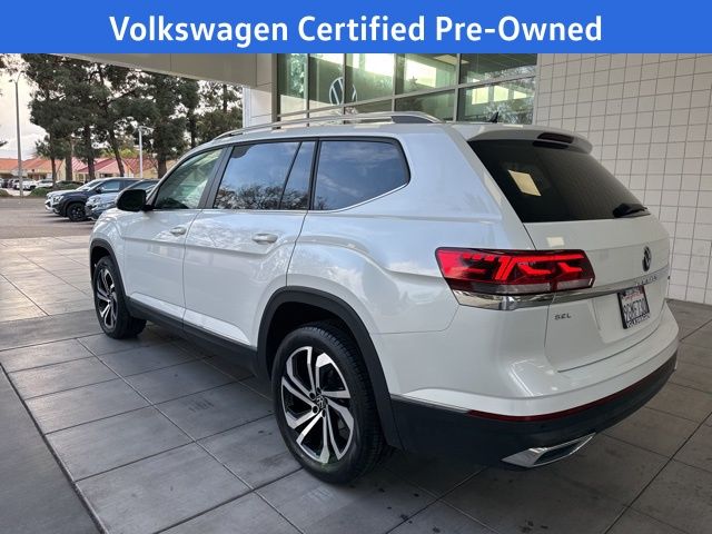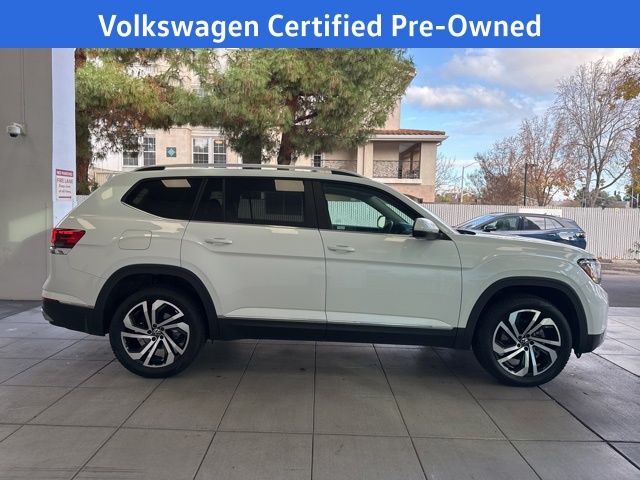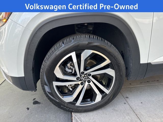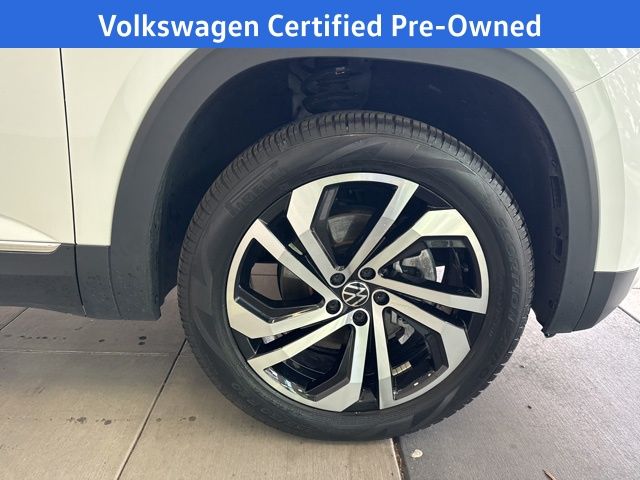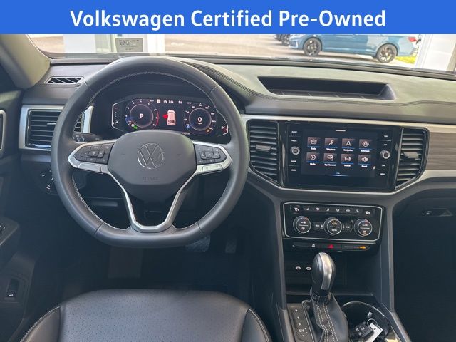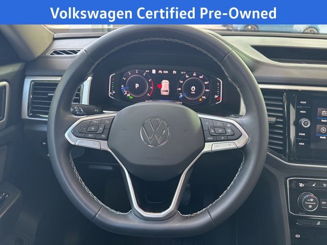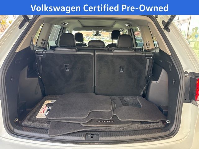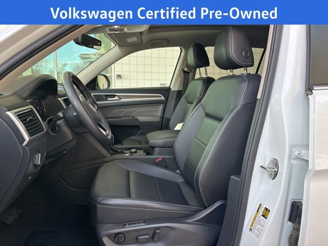 2023 Volkswagen Atlas 2.0T SEL in Opal White with Titan Black Premium Synthetic, Navigation, Volkswagen Certified, Moonroof/Sunroof, 3.60 Axle Ratio, 3rd row seats: split-bench, 4-Wheel Disc Brakes, 6 Speakers, ABS brakes, Active Cruise Control, Air Conditioning, Alloy wheels, AM/FM radio: SiriusXM with 360L, Auto High-beam Headlights, Automatic temperature control, Brake assist, Dual front impact airbags, Dual front side impact airbags, Electronic Stability Control, Exterior Parking Camera Rear, Four wheel independent suspension, Front anti-roll bar, Front Bucket Seats, Front Center Armrest, Front dual zone A/C, Fully automatic headlights, Heated door mirrors, Heated front seats, Heated steering wheel, Low tire pressure warning, Memory seat, Navigation System, Occupant sensing airbag, Overhead airbag, Perforated V-Tex Leatherette Seating Surfaces, Power door mirrors, Power driver seat, Power Liftgate, Power moonroof: Panoramic, Power passenger seat, Power steering, Power windows, Radio data system, Radio: MIB3 Discover Media w/8" Touchscreen Nav, Rain sensing wipers, Rear air conditioning, Rear anti-roll bar, Rear reading lights, Rear seat center armrest, Rear window defroster, Rear window wiper, Remote keyless entry, Speed-sensing steering, Split folding rear seat, Spoiler, Standard Suspension, Steering wheel mounted audio controls, Telescoping steering wheel, Tilt steering wheel, Traction control, Trip computer, Turn signal indicator mirrors, Volkswagen Logo Puddle Lights, Wheels: 20" x 8J 5-Spoke 2-Tone Machined Alloy. Certified. Opal White 2023 Volkswagen Atlas 2.0T SEL AWD 8-Speed Automatic with Tiptronic 2.0L TSI