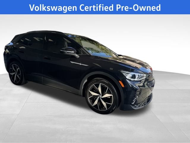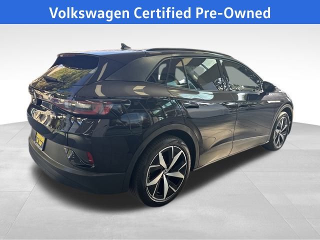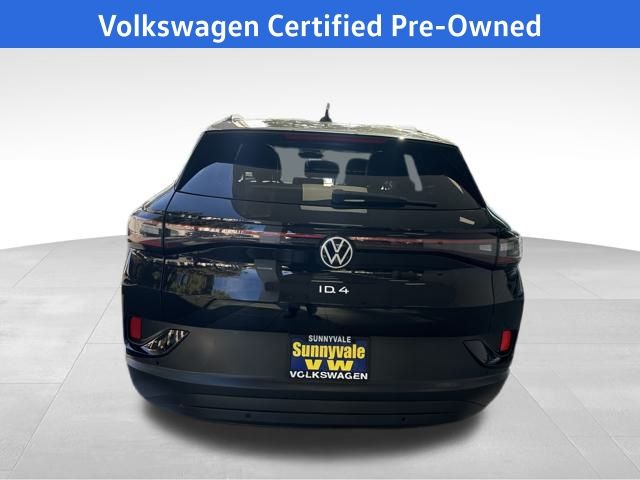 2023 Volkswagen ID.4 Pro S in Deep Black with Gray Premium Synthetic, 2-in-1 (240V/120V) EV Charging Cable, 4 Wheel Independent Suspension, 4.39 Axle Ratio, 7 Speakers, ABS brakes, Air Conditioning, Alloy wheels, Auto High-beam Headlights, Auto-dimming Rear-View mirror, Automatic temperature control, Brake assist, Bumpers: body-color, Delay-off headlights, Driver door bin, Driver vanity mirror, Driver's Seat Mounted Armrest, Dual front impact airbags, Dual front side impact airbags, Electronic Stability Control, Emergency communication system: VW Car-Net Safe & Secure 5-year, Exterior Parking Camera Rear, Four wheel independent suspension, Front anti-roll bar, Front Bucket Seats, Front dual zone A/C, Front fog lights, Front reading lights, Fully automatic headlights, Heated door mirrors, Heated Front Seats, Heated front seats, Heated steering wheel, Heavy Duty Trunk Liner w/VW CarGo Blocks, Illuminated entry, Low tire pressure warning, Memory seat, Navigation System, Occupant sensing airbag, Outside temperature display, Overhead airbag, Overhead console, Panic alarm, Passenger door bin, Passenger seat mounted armrest, Passenger vanity mirror, Perforated V-Tex Leatherette Seating Surfaces, Power door mirrors, Power driver seat, Power Liftgate, Power passenger seat, Power steering, Power windows, Radio data system, Radio: Discover Pro Max w/12" Touchscreen Nav, Rain sensing wipers, Rear anti-roll bar, Rear reading lights, Rear seat center armrest, Rear window defroster, Rear window wiper, Remote keyless entry, Rubber Mats Kit, Speed control, Speed-sensing steering, Split folding rear seat, Spoiler, Steering wheel mounted audio controls, Telescoping steering wheel, Tilt steering wheel, Traction control, Trip computer, Turn signal indicator mirrors, Variably intermittent wipers, VW Car-Net Safe & Secure 5-Year Plan, Wheels: 20" 5-Spoke 2-Tone Machined Alloy. Certified. Deep Black 2023 Volkswagen ID.4 Pro S RWD Single-Speed Automatic Electric Motor
