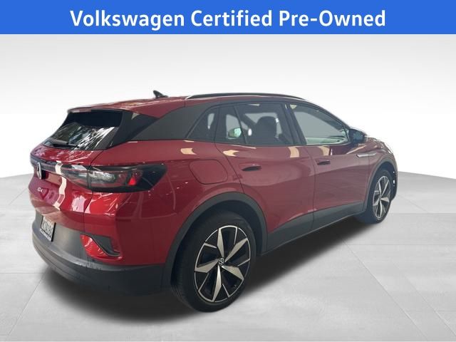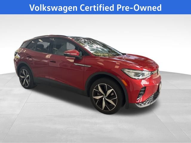 2023 Volkswagen ID.4 Pro S in Red Metallic with Black Leatherette, Navigation, Volkswagen Certified, Moonroof/Sunroof, 3.90 Axle Ratio, 4 Wheel Independent Suspension, 7 Speakers, ABS brakes, Active Cruise Control, Air Conditioning, Alloy wheels, Auto High-beam Headlights, Automatic temperature control, Brake assist, Bumpers: body-color, Delay-off headlights, Driver's Seat Mounted Armrest, Dual front impact airbags, Dual front side impact airbags, Electronic Stability Control, Exterior Parking Camera Rear, Four wheel independent suspension, Front anti-roll bar, Front Bucket Seats, Front dual zone A/C, Front fog lights, Front reading lights, Fully automatic headlights, Heated door mirrors, Heated Front Seats, Heated front seats, Low tire pressure warning, Memory seat, Navigation System, Occupant sensing airbag, Outside temperature display, Overhead airbag, Passenger vanity mirror, Perforated V-Tex Leatherette Seating Surfaces, Power door mirrors, Power driver seat, Power Liftgate, Power passenger seat, Power steering, Power windows, Radio data system, Radio: Discover Pro Max w/12" Touchscreen Nav, Rain sensing wipers, Rear anti-roll bar, Rear reading lights, Rear seat center armrest, Rear window defroster, Rear window wiper, Remote keyless entry, Speed-sensing steering, Spoiler, Steering wheel mounted audio controls, Telescoping steering wheel, Tilt steering wheel, Traction control, Trip computer, Variably intermittent wipers, Wheels: 20" 5-Spoke 2-Tone Machined Alloy. Certified. Red Metallic 2023 Volkswagen ID.4 Pro S AWD Single-Speed Automatic Electric Motor