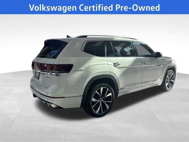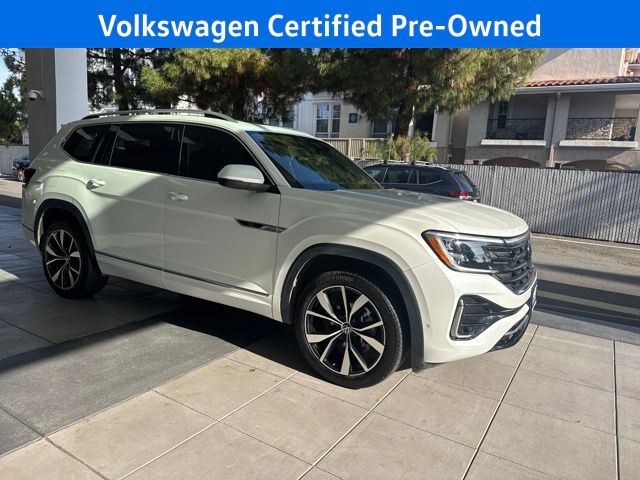 2024 Volkswagen Atlas 2.0T SEL Premium R-Line in White with Black Leather, Navigation, Volkswagen Certified, Moonroof/Sunroof, 10 Speakers, 3.60 Axle Ratio, 3rd row seats: split-bench, 4-Wheel Disc Brakes, ABS brakes, Air Conditioning, Alloy wheels, AM/FM radio: SiriusXM with 360L, Auto High-beam Headlights, Auto-dimming Rear-View mirror, Automatic temperature control, Brake assist, Bumpers: body-color, Compass, Delay-off headlights, Driver door bin, Driver vanity mirror, Dual front impact airbags, Dual front side impact airbags, Electronic Stability Control, Emergency communication system: VW Car-Net Safe & Secure 5-year, Exterior Parking Camera Rear, Four wheel independent suspension, Front anti-roll bar, Front Bucket Seats, Front Center Armrest, Front dual zone A/C, Front fog lights, Front reading lights, Fully automatic headlights, harman/kardon® Speakers, Heads-Up Display, Heated door mirrors, Heated front seats, Heated rear seats, Heated steering wheel, Heated/Actively Ventilated Front Bucket Seats, Illuminated entry, Leather steering wheel, Low tire pressure warning, Memory seat, Navigation System, Occupant sensing airbag, Outside temperature display, Overhead airbag, Overhead console, Panic alarm, Passenger door bin, Passenger vanity mirror, Perforated Vienna Leather Seating Surfaces, Power door mirrors, Power driver seat, Power Liftgate, Power moonroof: Panoramic, Power passenger seat, Power steering, Power windows, Radio data system, Radio: MIB3 Discover Media w/Navigation, Rain sensing wipers, Rear air conditioning, Rear anti-roll bar, Rear audio controls, Rear reading lights, Rear window defroster, Rear window wiper, Remote keyless entry, Security system, Speed control, Speed-sensing steering, Split folding rear seat, Spoiler, Sport steering wheel, Standard Suspension, Steering wheel mounted audio controls, Tachometer, Telescoping steering wheel, Tilt steering wheel, Traction control, Trip computer, Turn signal indicator mirrors, Variably intermittent wipers, Ventilated front seats, Wheels: 21" 2-Tone Machined Alloy. White 2024 Volkswagen Atlas 2.0T SEL Premium R-Line AWD 8-Speed Automatic with Tiptronic 2.0L TSI