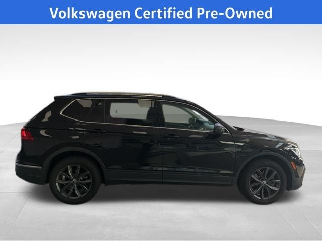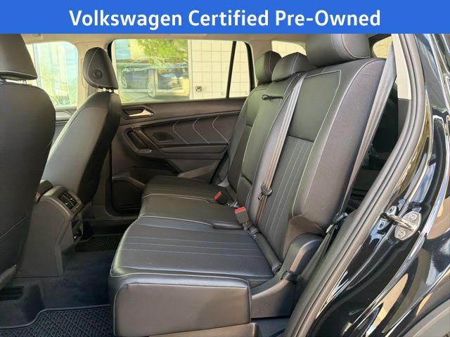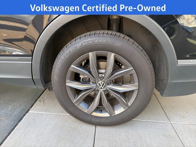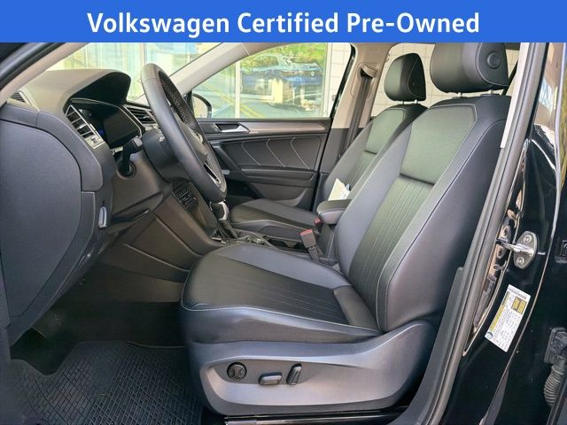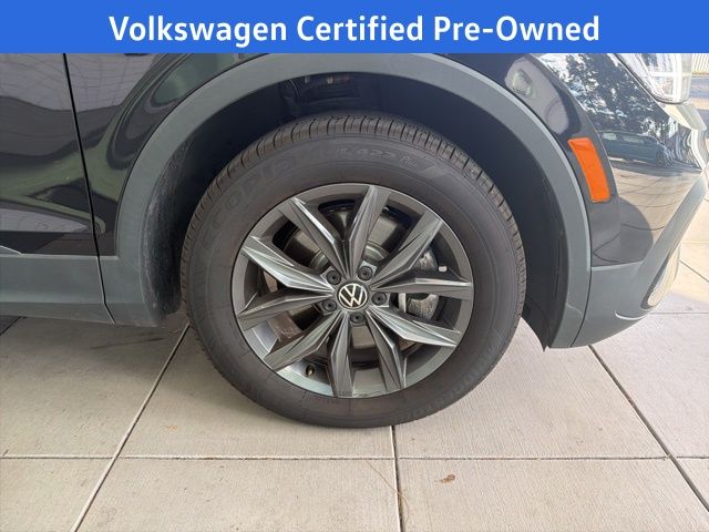 Navigation, Volkswagen Certified, AWD, 3.33 Axle Ratio, 4-Wheel Disc Brakes, 4-Wheel Independent Suspension, 6 Speakers, ABS brakes, Air Conditioning, Alloy wheels, AM/FM radio: SiriusXM with 360L, Auto-dimming Rear-View mirror, Automatic temperature control, Brake assist, Bumpers: body-color, Compass, Credit - Power Rear Liftgate Removed, Delay-off headlights, Driver door bin, Driver vanity mirror, Dual front impact airbags, Dual front side impact airbags, Electronic Stability Control, Emergency communication system: VW Car-Net Safe & Secure 5-year, Exterior Parking Camera Rear, Four wheel independent suspension, Front anti-roll bar, Front Bucket Seats, Front Center Armrest, Front dual zone A/C, Front reading lights, Fully automatic headlights, Heated door mirrors, Heated Front Seats, Heated front seats, Illuminated entry, Leather Shift Knob, Low tire pressure warning, Occupant sensing airbag, Outside temperature display, Overhead airbag, Overhead console, Panic alarm, Passenger door bin, Passenger vanity mirror, Perforated V-Tex Leatherette Seating Surfaces, Power door mirrors, Power driver seat, Power steering, Power windows, Radio data system, Radio: MIB3 Composition Media AM/FM/HD, Rain sensing wipers, Rear anti-roll bar, Rear reading lights, Rear seat center armrest, Rear window defroster, Rear window wiper, Remote keyless entry, Security system, Speed control, Speed-sensing steering, Split folding rear seat, Spoiler, Steering wheel mounted audio controls, Tachometer, Telescoping steering wheel, Tilt steering wheel, Traction control, Trip computer, Turn signal indicator mirrors, Variably intermittent wipers, Wheels: 18" Dark Graphite Painted 10-Spoke Alloy. Certified. Black 2024 Volkswagen Tiguan 2.0T SE AWD 8-Speed Automatic with Tiptronic 2.0L TSI DOHC