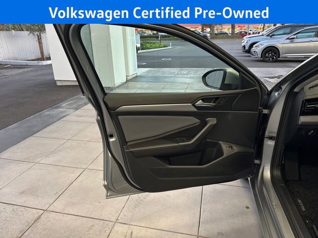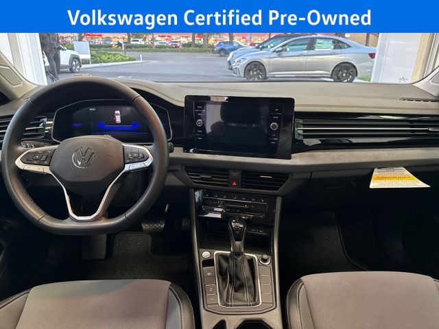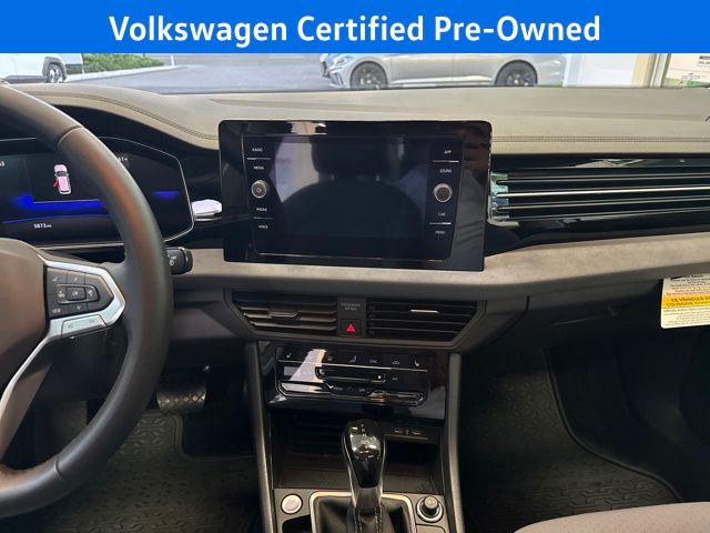 2025 Volkswagen Jetta 1.5T SE in Silver with Grigio/Titan Black Leather, Volkswagen Certified, Moonroof/Sunroof, Previus Loaner, Grigio/Titan Black w/CloudTex & V-Tex Leatherette Seat Trim, 4-Wheel Disc Brakes, 6 Speakers, ABS brakes, Active Blind Spot Monitor, Active Cruise Control, Air Conditioning, Alloy wheels, AM/FM radio: SiriusXM with 360L, Automatic temperature control, Brake assist, Dual front impact airbags, Dual front side impact airbags, Electronic Stability Control, Exterior Parking Camera Rear, Front anti-roll bar, Front Bucket Seats, Front Center Armrest, Front dual zone A/C, Front wheel independent suspension, Heated door mirrors, Heated Front Seats, Heated front seats, Low tire pressure warning, Occupant sensing airbag, Outside temperature display, Overhead airbag, Overhead console, Passenger door bin, Passenger vanity mirror, Power door mirrors, Power driver seat, Power steering, Power windows, Radio data system, Radio: MIB3 Composition Media w/8" Touchscreen, Rain sensing wipers, Rear anti-roll bar, Rear reading lights, Rear seat center armrest, Rear window defroster, Remote keyless entry, Speed control, Speed-sensing steering, Steering wheel mounted audio controls, Telescoping steering wheel, Tilt steering wheel, Traction control, Trip computer, Variably intermittent wipers, Wheels: 17" Twin 5-Spoke 2-Tone Machined Alloy. Certified. Silver 2025 Volkswagen Jetta 1.5T SE FWD 8-Speed Automatic with Tiptronic 1.5L I-4 DI DOHC Turbocharged