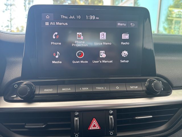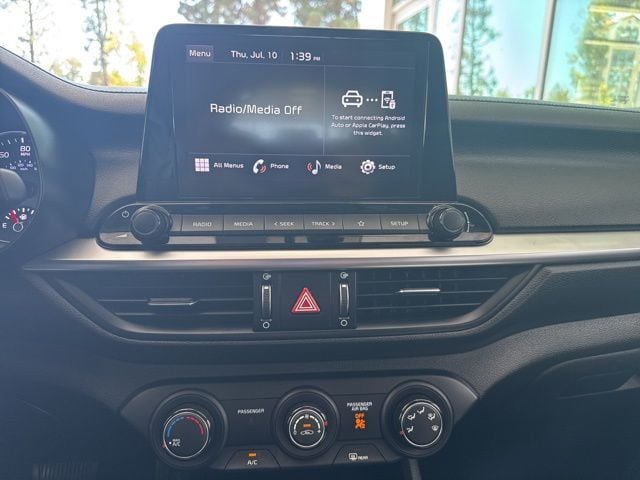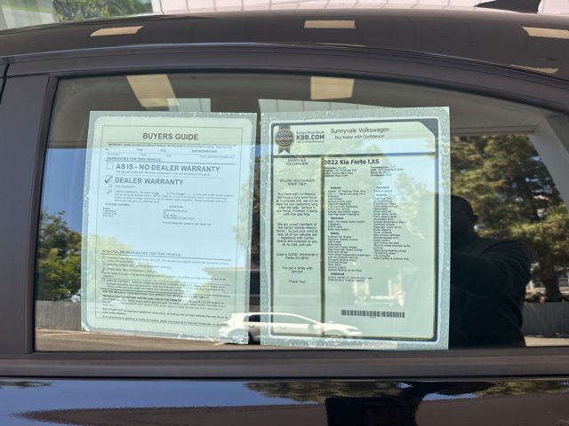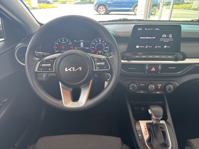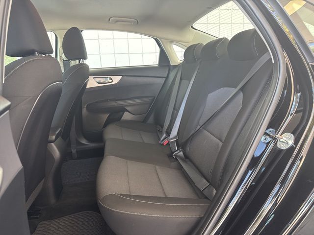 2022 Kia Forte LXS in Aurora Black Pearl with Black Cloth, 4 Speakers, 4-Wheel Disc Brakes, ABS brakes, Air Conditioning, Alloy wheels, AM/FM radio, Apple CarPlay & Android Auto, Auto High-beam Headlights, Brake assist, Bumpers: body-color, Cloth Seat Trim, Delay-off headlights, Driver door bin, Driver vanity mirror, Dual front impact airbags, Dual front side impact airbags, Electronic Stability Control, Exterior Parking Camera Rear, Front anti-roll bar, Front Bucket Seats, Front Center Armrest, Front reading lights, Front wheel independent suspension, Fully automatic headlights, Illuminated entry, LED Turn Signal w/Outside Mirror Indicators, Low tire pressure warning, Occupant sensing airbag, Outside temperature display, Overhead airbag, Overhead console, Panic alarm, Passenger door bin, Passenger vanity mirror, Power door mirrors, Power steering, Power windows, Radio data system, Radio: HD Display Audio System, Rear window defroster, Remote keyless entry, Security system, Speed control, Split folding rear seat, Steering wheel mounted audio controls, Tachometer, Telescoping steering wheel, Traction control, Trip computer, Variably intermittent wipers, Wheels: 16" Machine Finish Alloy. Aurora Black Pearl 2022 Kia Forte LXS FWD CVT 2.0L 4-Cylinder MPI