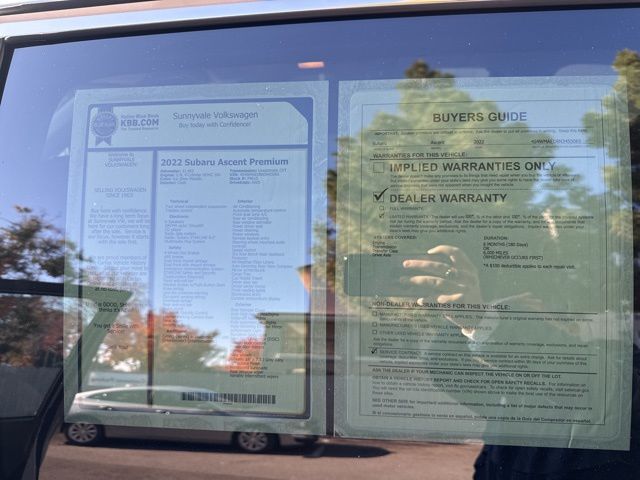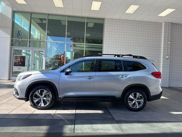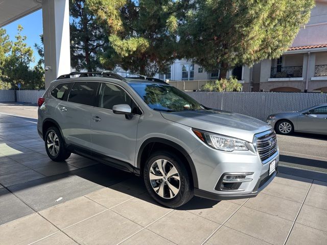 2022 Subaru Ascent Premium in Ice Silver Metallic with Black Cloth, 3rd row seats: bench, 4-Wheel Disc Brakes, 6 Speakers, ABS brakes, Air Conditioning, AM/FM radio: SiriusXM, Auto High-beam Headlights, Automatic temperature control, Brake assist, CD player, Dual front impact airbags, Dual front side impact airbags, Exterior Parking Camera Rear, Front anti-roll bar, Front Bucket Seats, Front dual zone A/C, Fully automatic headlights, Heated door mirrors, Keyless Access w/Push-Button Start, Knee airbag, Low tire pressure warning, Occupant sensing airbag, Power door mirrors, Power driver seat, Power steering, Power windows, Radio data system, Radio: Subaru STARLINK 8.0" Multimedia Plus System, Rear air conditioning, Rear Bumper Cover, Rear window defroster, Remote keyless entry, Speed control. Ice Silver Metallic 2022 Subaru Ascent Premium AWD Lineartronic CVT 2.4L 4-Cylinder DOHC 16V