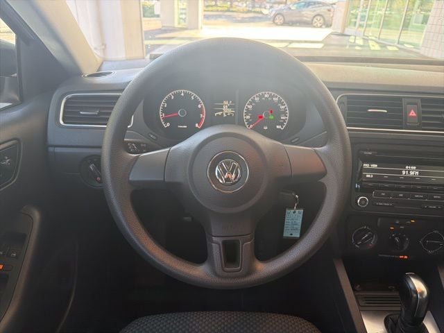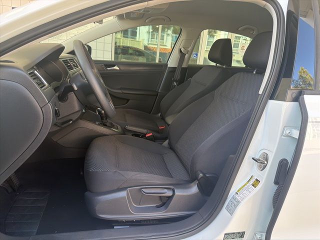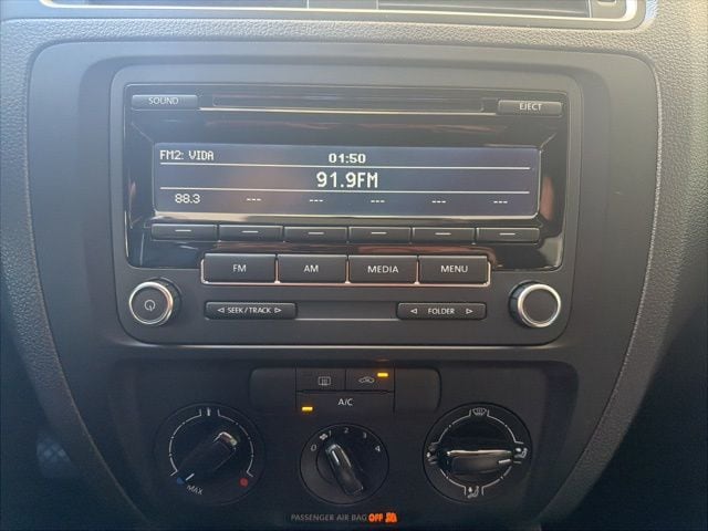Local Trade, Titan Black Cloth, 15" Steel Wheels w/Full Covers, 4 Speakers, 4-Wheel Disc Brakes, ABS brakes, Air Conditioning, AM/FM radio, Brake assist, Bumpers: body-color, CD player, Cloth Seat Trim, Driver door bin, Driver vanity mirror, Dual front impact airbags, Dual front side impact airbags, Electronic Stability Control, Front anti-roll bar, Front Bucket Seats, Front Center Armrest, Front reading lights, Front wheel independent suspension, Heated door mirrors, Illuminated entry, Low tire pressure warning, Occupant sensing airbag, Outside temperature display, Overhead airbag, Overhead console, Panic alarm, Passenger door bin, Passenger vanity mirror, Power door mirrors, Power steering, Power windows, Radio data system, Radio: RCD 310 w/Single CD, Rear anti-roll bar, Rear reading lights, Rear window defroster, Remote keyless entry, Tachometer, Telescoping steering wheel, Tilt steering wheel, Traction control, Trip computer, Variably intermittent wipers. White 2014 Volkswagen Jetta 2.0L S FWD 6-Speed Automatic 2.0L I4 SOHC