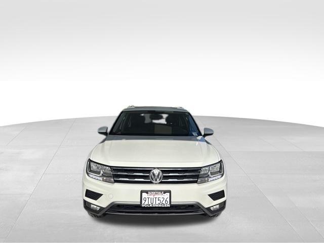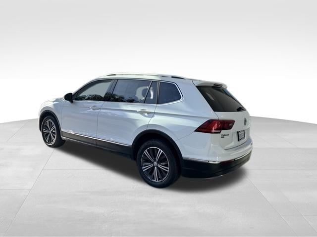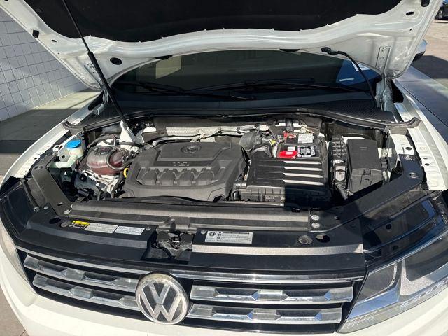 2018 Volkswagen Tiguan 2.0T SEL in White with Titan Black Leatherette, Moonroof/Sunroof, AWD, 3.33 Axle Ratio, 4-Wheel Disc Brakes, 6 Speakers, ABS brakes, Air Conditioning, Alloy wheels, AM/FM radio: SiriusXM, Automatic temperature control, Brake assist, Bumpers: body-color, Compass, Delay-off headlights, Driver door bin, Driver vanity mirror, Dual front impact airbags, Dual front side impact airbags, Electronic Stability Control, Emergency communication system: VW Car-Net, Exterior Parking Camera Rear, Four wheel independent suspension, Front anti-roll bar, Front Bucket Seats, Front Center Armrest, Front dual zone A/C, Front fog lights, Front reading lights, Fully automatic headlights, Heated door mirrors, Heated Front Bucket Seats, Heated front seats, Illuminated entry, Leather Shift Knob, Low tire pressure warning, Navigation System, Occupant sensing airbag, Outside temperature display, Overhead airbag, Overhead console, Panic alarm, Passenger door bin, Passenger vanity mirror, Perforated V-Tex Leatherette Seating Surfaces, Power door mirrors, Power driver seat, Power Liftgate, Power moonroof, Power steering, Power windows, Radio data system, Radio: AM/FM/HD/CD w/Dual USB Inputs, Rear anti-roll bar, Rear reading lights, Rear seat center armrest, Rear window defroster, Rear window wiper, Remote CD player, Remote keyless entry, Security system, Speed control, Speed-sensing steering, Split folding rear seat, Spoiler, Steering wheel mounted audio controls, Tachometer, Telescoping steering wheel, Tilt steering wheel, Traction control, Trip computer, Turn signal indicator mirrors, Variably intermittent wipers, Wheels: 18 Nizza. White 2018 Volkswagen Tiguan 2.0T SEL 4Motion AWD 8-Speed Automatic with Tiptronic 2.0L TSI DOHC