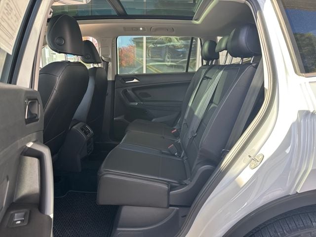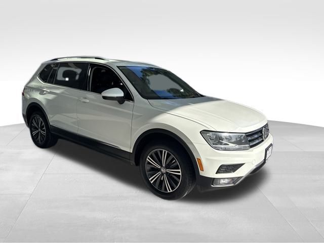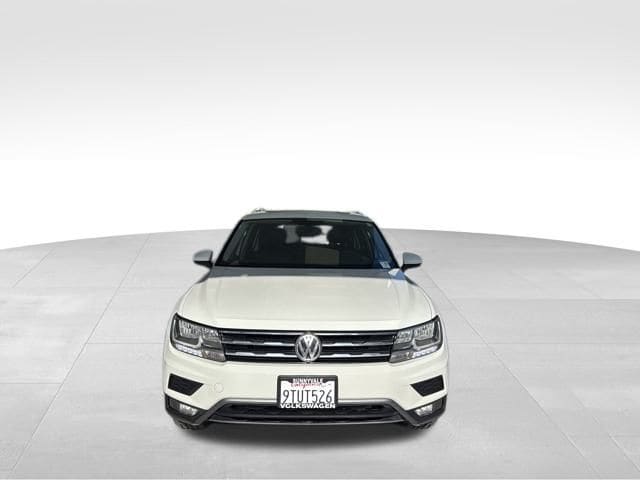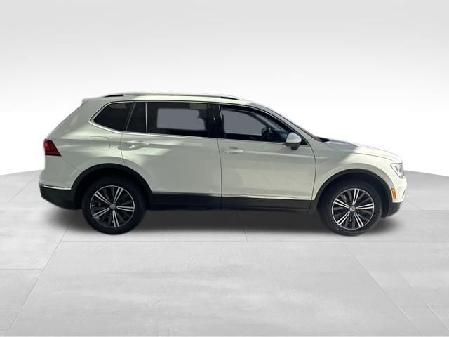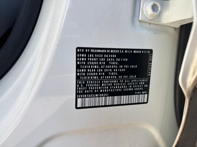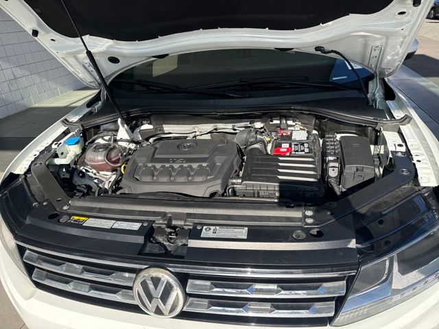 2018 Volkswagen Tiguan 2.0T SEL in White with Titan Black Leatherette, Moonroof/Sunroof, AWD, 3.33 Axle Ratio, 4-Wheel Disc Brakes, 6 Speakers, ABS brakes, Air Conditioning, Alloy wheels, AM/FM radio: SiriusXM, Automatic temperature control, Brake assist, Bumpers: body-color, Compass, Delay-off headlights, Driver door bin, Driver vanity mirror, Dual front impact airbags, Dual front side impact airbags, Electronic Stability Control, Emergency communication system: VW Car-Net, Exterior Parking Camera Rear, Four wheel independent suspension, Front anti-roll bar, Front Bucket Seats, Front Center Armrest, Front dual zone A/C, Front fog lights, Front reading lights, Fully automatic headlights, Heated door mirrors, Heated Front Bucket Seats, Heated front seats, Illuminated entry, Leather Shift Knob, Low tire pressure warning, Navigation System, Occupant sensing airbag, Outside temperature display, Overhead airbag, Overhead console, Panic alarm, Passenger door bin, Passenger vanity mirror, Perforated V-Tex Leatherette Seating Surfaces, Power door mirrors, Power driver seat, Power Liftgate, Power moonroof, Power steering, Power windows, Radio data system, Radio: AM/FM/HD/CD w/Dual USB Inputs, Rear anti-roll bar, Rear reading lights, Rear seat center armrest, Rear window defroster, Rear window wiper, Remote CD player, Remote keyless entry, Security system, Speed control, Speed-sensing steering, Split folding rear seat, Spoiler, Steering wheel mounted audio controls, Tachometer, Telescoping steering wheel, Tilt steering wheel, Traction control, Trip computer, Turn signal indicator mirrors, Variably intermittent wipers, Wheels: 18" Nizza. White 2018 Volkswagen Tiguan 2.0T SEL 4Motion AWD 8-Speed Automatic with Tiptronic 2.0L TSI DOHC