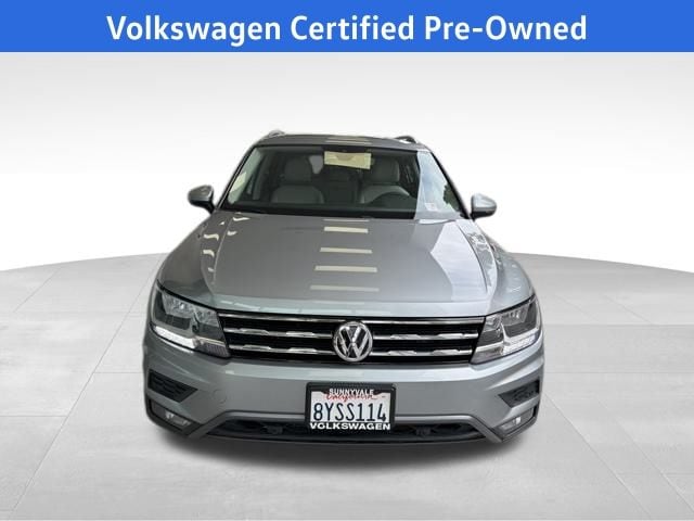 2021 Volkswagen Tiguan 2.0T SEL in Silver Metallic with Storm Gray Premium Synthetic, Navigation, Volkswagen Certified, Moonroof/Sunroof, 3.33 Axle Ratio, 4-Wheel Disc Brakes, 4-Wheel Independent Suspension, 6 Speakers, ABS brakes, Air Conditioning, Alloy wheels, AM/FM radio: SiriusXM with 360L, Automatic temperature control, Brake assist, Compass, Dual front impact airbags, Dual front side impact airbags, Electronic Stability Control, Exterior Parking Camera Rear, Forward collision: FCW w/Autonomous Emergency Braking mitigation, Four wheel independent suspension, Front anti-roll bar, Front Bucket Seats, Front Center Armrest, Front dual zone A/C, Front reading lights, Fully automatic headlights, Heated door mirrors, Heated Front Comfort Seats, Heated front seats, Heated steering wheel, Low tire pressure warning, Navigation system: VW Car-Net Guide & Inform, Occupant sensing airbag, Overhead airbag, Power door mirrors, Power driver seat, Power Liftgate, Power moonroof, Power steering, Power windows, Radio data system, Rain sensing wipers, Rear anti-roll bar, Rear reading lights, Rear window defroster, Rear window wiper, Remote keyless entry, Speed-sensing steering, Steering wheel mounted audio controls, Tachometer, Telescoping steering wheel, Tilt steering wheel, Traction control, Trip computer, Variably intermittent wipers. Certified. Silver Metallic 2021 Volkswagen Tiguan 2.0T SEL FWD 8-Speed Automatic with Tiptronic 2.0L TSI DOHC