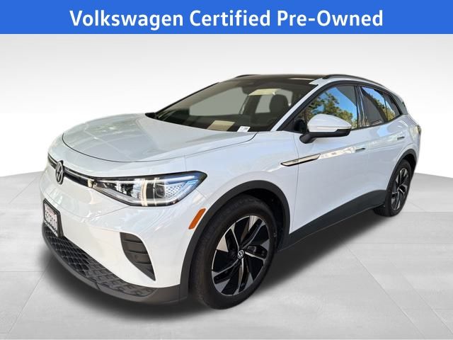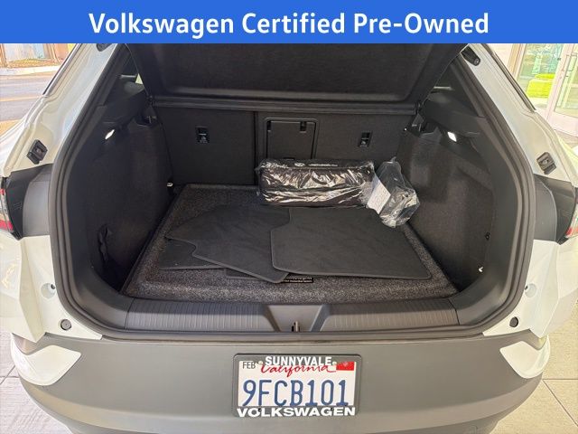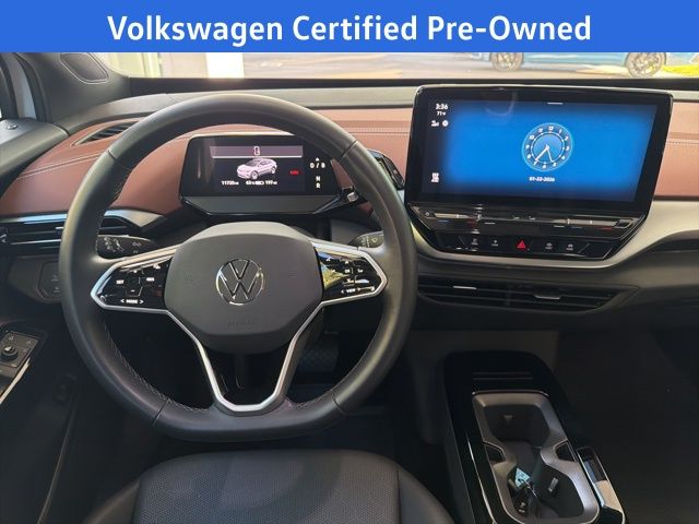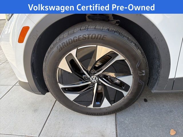 New Price! 2022 Volkswagen ID.4 Pro S in Glacier White with Lunar Gray Premium Synthetic, Volkswagen Certified, Moonroof/Sunroof, 4.39 Axle Ratio, 7 Speakers, ABS brakes, Active Cruise Control, Air Conditioning, Alloy wheels, Auto High-beam Headlights, Automatic temperature control, Brake assist, Bumpers: body-color, Dual front impact airbags, Dual front side impact airbags, Electronic Stability Control, Exterior Parking Camera Rear, Four wheel independent suspension, Front anti-roll bar, Front dual zone A/C, Front fog lights, Heated door mirrors, Low tire pressure warning, Memory seat, Navigation System, Occupant sensing airbag, Outside temperature display, Overhead airbag, Power door mirrors, Power driver seat, Power Liftgate, Power steering, Power windows, Radio data system, Radio: Discover Pro Max w/12" Touchscreen Nav, Rear anti-roll bar, Rear seat center armrest, Rear window defroster, Rear window wiper, Remote keyless entry, Roof rack: rails only, Speed control, Speed-sensing steering, Spoiler, Steering wheel mounted audio controls, Telescoping steering wheel, Tilt steering wheel, Traction control, Trip computer, Turn signal indicator mirrors, Variably intermittent wipers, Wheels: 19" 5-Spoke 2-Tone Machined Alloy. Certified. Glacier White 2022 Volkswagen ID.4 Pro S RWD Single-Speed Automatic Electric Motor