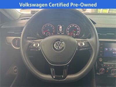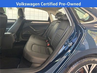 2022 Volkswagen Passat 2.0T SE in Blue Metallic with Titan Black Premium Synthetic, Volkswagen Certified, Moonroof/Sunroof, Titan Black Premium Synthetic, 4-Wheel Disc Brakes, 6 Speakers, ABS brakes, Active Blind Spot Monitor, Air Conditioning, Alloy wheels, AM/FM radio: SiriusXM, Auto-dimming Rear-View mirror, Automatic temperature control, Brake assist, Bumpers: body-color, Delay-off headlights, Driver door bin, Driver vanity mirror, Dual front impact airbags, Dual front side impact airbags, Electronic Stability Control, Emergency communication system, Exterior Parking Camera Rear, First Aid Kit, Four wheel independent suspension, Frameless Auto-Dimming Rearview Mirror, Front anti-roll bar, Front Bucket Seats, Front Center Armrest, Front dual zone A/C, Front reading lights, Fully automatic headlights, Heated door mirrors, Heated Front Comfort Seats, Heated front seats, Illuminated entry, Leather Shift Knob, Leather steering wheel, Low tire pressure warning, Occupant sensing airbag, Outside temperature display, Overhead airbag, Overhead console, Panic alarm, Passenger door bin, Passenger vanity mirror, Perforated V-Tex Leatherette Seating Surfaces, Power door mirrors, Power driver seat, Power moonroof, Power steering, Power windows, Radio data system, Radio: Composition Media w/Touchscreen, Rain sensing wipers, Rear anti-roll bar, Rear reading lights, Rear seat center armrest, Rear window defroster, Remote keyless entry, Roadside Assistance Kit, Speed control, Speed-sensing steering, Split folding rear seat, Steering wheel mounted audio controls, Tachometer, Telescoping steering wheel, Tilt steering wheel, Traction control, Trip computer, Turn signal indicator mirrors, Variably intermittent wipers, Wheels: 18" x 8J 5-Spoke 2-Tone Machined Alloy. Certified. Blue Metallic 2022 Volkswagen Passat 2.0T SE FWD 6-Speed Automatic with Tiptronic 2.0L I4 TSI Turbocharged