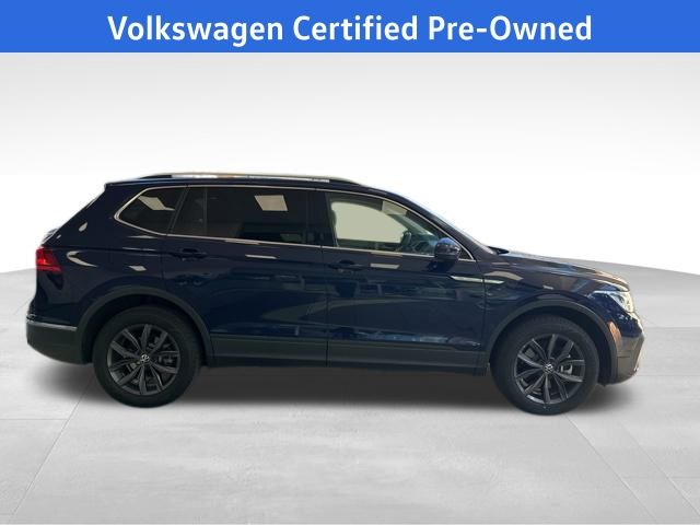 2022 Volkswagen Tiguan 2.0T SE in Atlantic Blue Metallic with Storm Gray Premium Synthetic, Volkswagen Certified, Moonroof/Sunroof, AWD, 3.33 Axle Ratio, 4-Wheel Disc Brakes, 4-Wheel Independent Suspension, 6 Speakers, ABS brakes, Active Cruise Control, Air Conditioning, Alloy wheels, AM/FM radio: SiriusXM with 360L, Automatic temperature control, Brake assist, Bumpers: body-color, Delay-off headlights, Dual front impact airbags, Dual front side impact airbags, Electronic Stability Control, Exterior Parking Camera Rear, Four wheel independent suspension, Front anti-roll bar, Front Center Armrest, Front dual zone A/C, Fully automatic headlights, Heated door mirrors, Heated Front Comfort Seats, Heated front seats, Low tire pressure warning, Occupant sensing airbag, Outside temperature display, Overhead airbag, Panoramic Sunroof Package, Perforated V-Tex Leatherette Seating Surfaces, Power door mirrors, Power driver seat, Power Liftgate, Power Rear Liftgate Delete, Power steering, Power windows, Radio data system, Radio: MIB3 Composition Media AM/FM/HD, Rain sensing wipers, Rear anti-roll bar, Rear reading lights, Rear seat center armrest, Rear window defroster, Rear window wiper, Remote keyless entry, Speed control, Speed-sensing steering, Split folding rear seat, Steering wheel mounted audio controls, Tachometer, Telescoping steering wheel, Tilt steering wheel, Traction control, Trip computer, Turn signal indicator mirrors, Variably intermittent wipers. Certified. Atlantic Blue Metallic 2022 Volkswagen Tiguan 2.0T SE AWD 8-Speed Automatic with Tiptronic 2.0L TSI DOHC