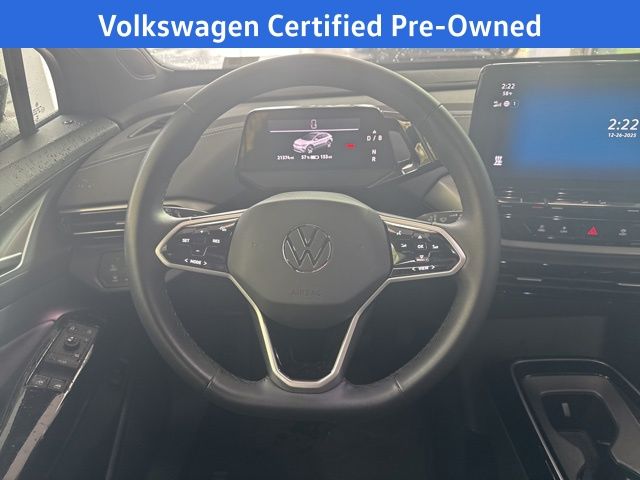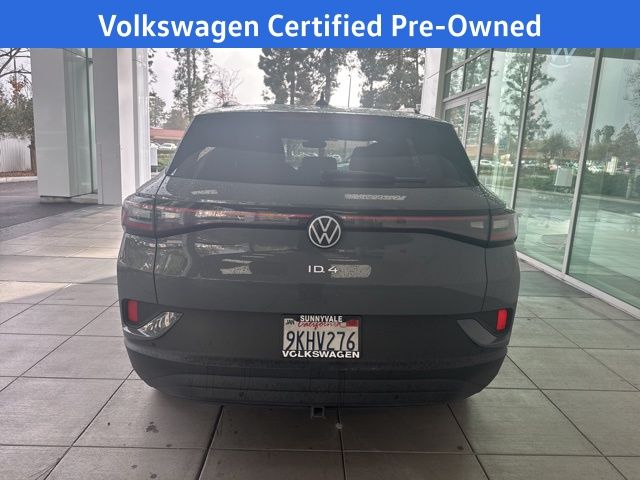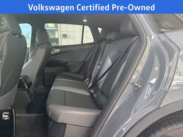 2023 Volkswagen ID.4 Pro S in Pure Gray with Black Leatherette, Navigation, Volkswagen Certified, Moonroof/Sunroof, 3.90 Axle Ratio, 4 Wheel Independent Suspension, 7 Speakers, ABS brakes, Air Conditioning, Alloy wheels, Auto High-beam Headlights, Auto-dimming Rear-View mirror, Automatic temperature control, Brake assist, Bumpers: body-color, Delay-off headlights, Driver door bin, Driver vanity mirror, Driver's Seat Mounted Armrest, Dual front impact airbags, Dual front side impact airbags, Electronic Stability Control, Emergency communication system: VW Car-Net Safe & Secure 5-year, Exterior Parking Camera Rear, Four wheel independent suspension, Front anti-roll bar, Front Bucket Seats, Front dual zone A/C, Front fog lights, Front reading lights, Fully automatic headlights, Heated door mirrors, Heated Front Seats, Heated front seats, Heated steering wheel, Illuminated entry, Low tire pressure warning, Memory seat, Navigation System, Occupant sensing airbag, Outside temperature display, Overhead airbag, Overhead console, Panic alarm, Passenger door bin, Passenger seat mounted armrest, Passenger vanity mirror, Perforated V-Tex Leatherette Seating Surfaces, Power door mirrors, Power driver seat, Power Liftgate, Power passenger seat, Power steering, Power windows, Radio data system, Radio: Discover Pro Max w/12" Touchscreen Nav, Rain sensing wipers, Rear anti-roll bar, Rear reading lights, Rear seat center armrest, Rear window defroster, Rear window wiper, Remote keyless entry, Speed control, Speed-sensing steering, Split folding rear seat, Spoiler, Steering wheel mounted audio controls, Telescoping steering wheel, Tilt steering wheel, Traction control, Trip computer, Turn signal indicator mirrors, Variably intermittent wipers, Wheels: 20" 5-Spoke 2-Tone Machined Alloy. Certified. Pure Gray 2023 Volkswagen ID.4 Pro S AWD Single-Speed Automatic Electric Motor