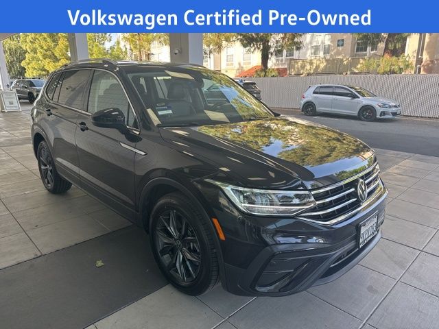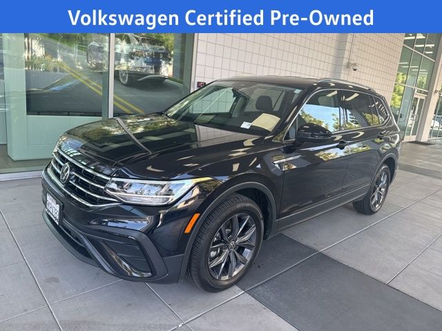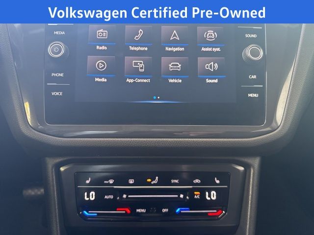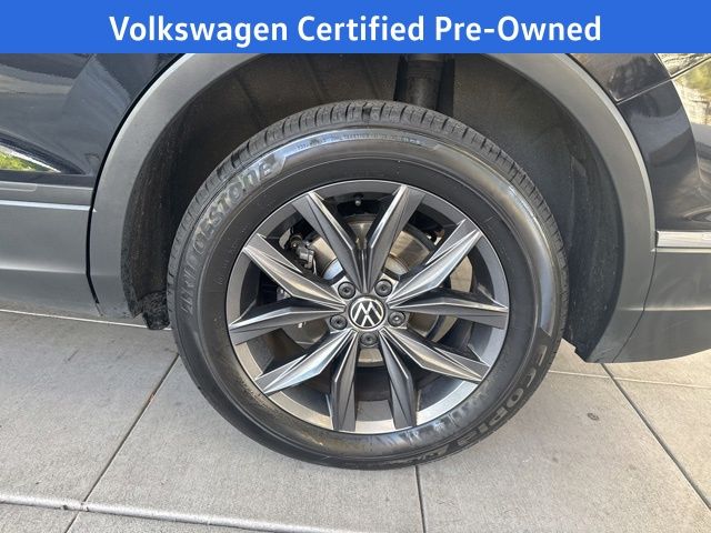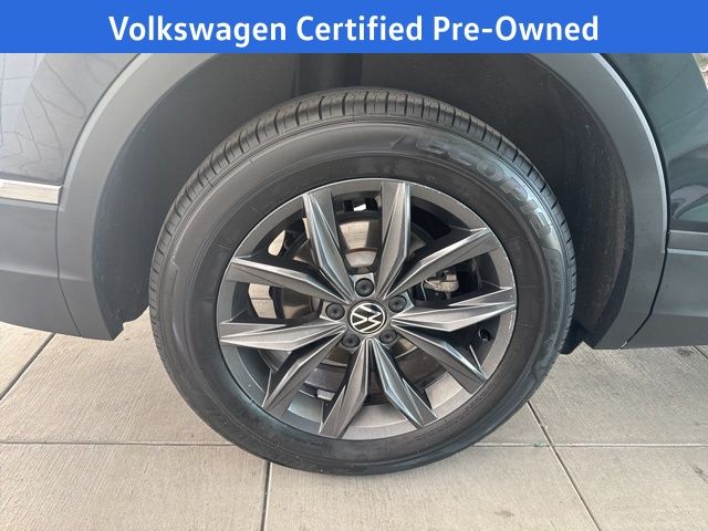Volkswagen Certified, AWD, 4-Wheel Disc Brakes, 4-Wheel Independent Suspension, ABS brakes, Brake assist, Credit - Power Rear Liftgate Removed, Delay-off headlights, Dual front impact airbags, Dual front side impact airbags, Electronic Stability Control, Emergency communication system: VW Car-Net Safe & Secure 5-year, Exterior Parking Camera Rear, Four wheel independent suspension, Front anti-roll bar, Front Bucket Seats, Front Center Armrest, Front dual zone A/C, Fully automatic headlights, Heated door mirrors, Heated Front Seats, Heated front seats, Illuminated entry, Leather Shift Knob, Occupant sensing airbag, Outside temperature display, Overhead airbag, Overhead console, Panic alarm, Passenger vanity mirror, Perforated V-Tex Leatherette Seating Surfaces, Power door mirrors, Power driver seat, Power steering, Power windows, Radio data system, Radio: MIB3 Composition Media AM/FM/HD, Rear anti-roll bar, Remote keyless entry, Security system, Speed-sensing steering, Split folding rear seat, Steering wheel mounted audio controls, Tachometer, Telescoping steering wheel, Tilt steering wheel, Traction control, Trip computer, Turn signal indicator mirrors, Wheels: 18" Dark Graphite Painted 10-Spoke Alloy. Deep Black Pearl 2024 Volkswagen Tiguan 2.0T SE AWD 8-Speed Automatic with Tiptronic 2.0L TSI DOHC