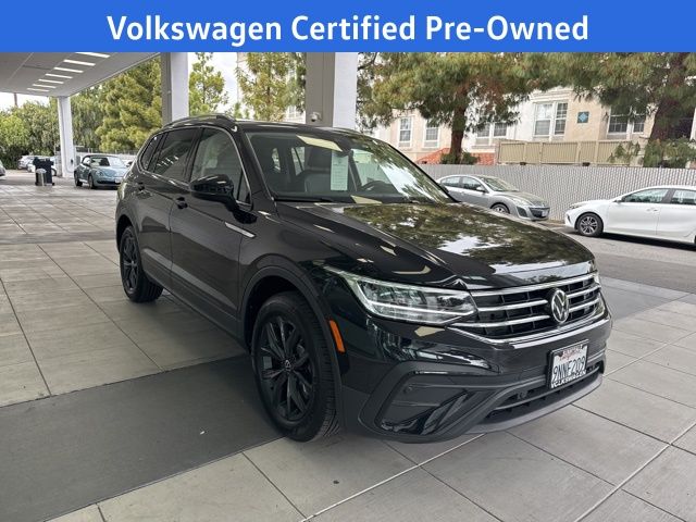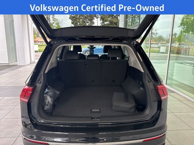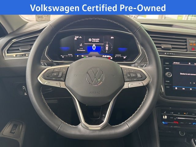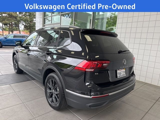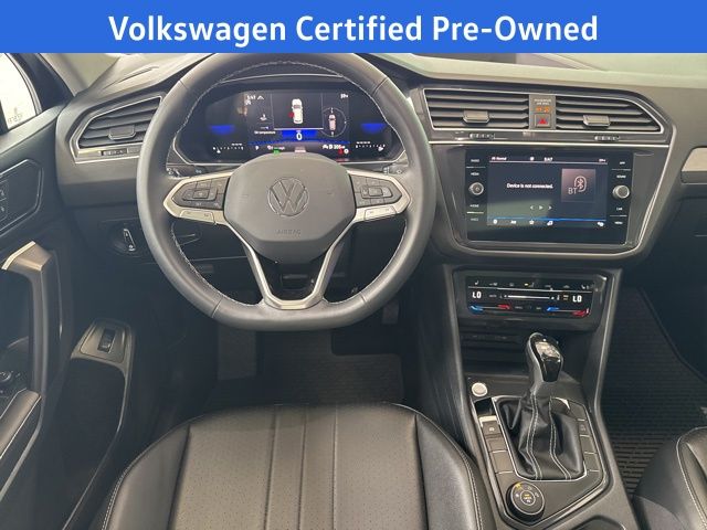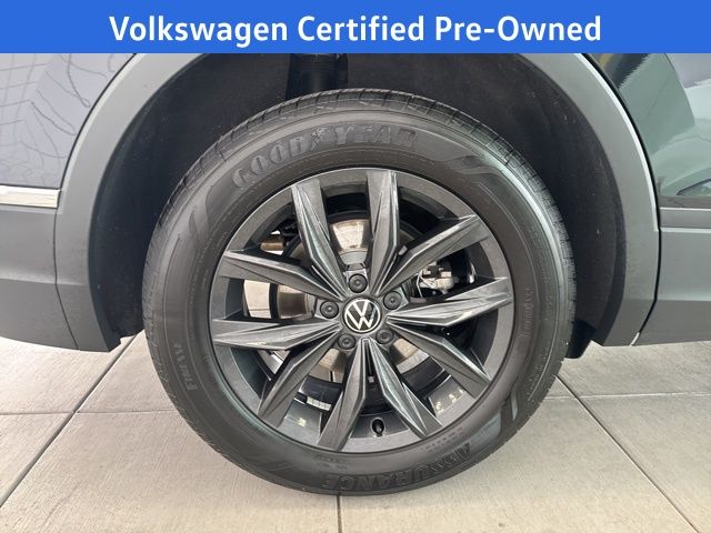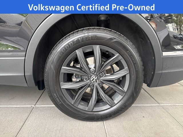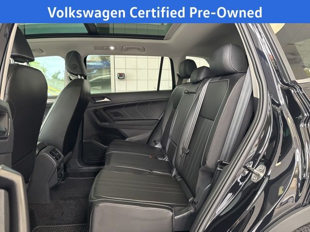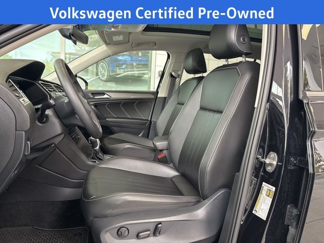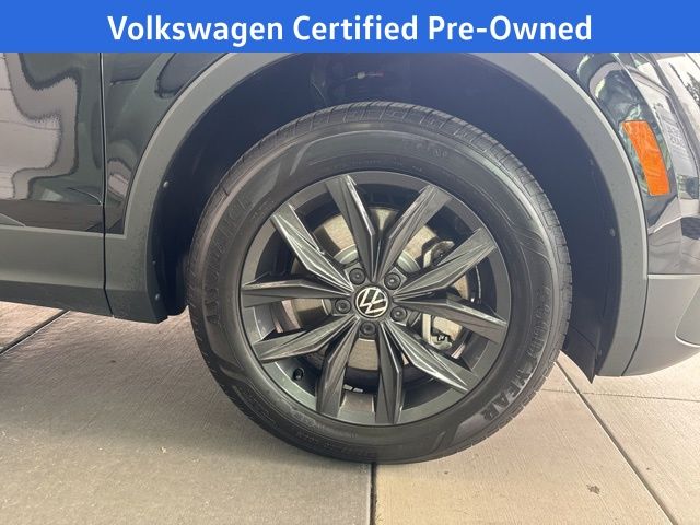 2024 Volkswagen Tiguan 2.0T SE in Black with Titan Black Leatherette, Moonroof/Sunroof, Previous Loaner, AWD, 3.33 Axle Ratio, 4-Wheel Disc Brakes, 4-Wheel Independent Suspension, 6 Speakers, ABS brakes, Active Cruise Control, Air Conditioning, Alloy wheels, AM/FM radio: SiriusXM with 360L, Automatic temperature control, Brake assist, Delay-off headlights, Dual front impact airbags, Dual front side impact airbags, Electronic Stability Control, Emergency communication system: VW Car-Net Safe & Secure 5-year, Exterior Parking Camera Rear, Four wheel independent suspension, Front anti-roll bar, Front dual zone A/C, Heated door mirrors, Heated Front Seats, Heated front seats, Low tire pressure warning, Occupant sensing airbag, Power door mirrors, Power driver seat, Power Liftgate, Power steering, Power windows, Radio data system, Radio: MIB3 Composition Media AM/FM/HD, Rain sensing wipers, Rear window defroster, Rear window wiper, Remote keyless entry, Speed control, Speed-sensing steering, Spoiler, Steering wheel mounted audio controls, Telescoping steering wheel, Tilt steering wheel, Trip computer, Turn signal indicator mirrors, Variably intermittent wipers, Wheels: 18" Dark Graphite Painted 10-Spoke Alloy. Certified. Black 2024 Volkswagen Tiguan 2.0T SE AWD 8-Speed Automatic with Tiptronic 2.0L TSI DOHC